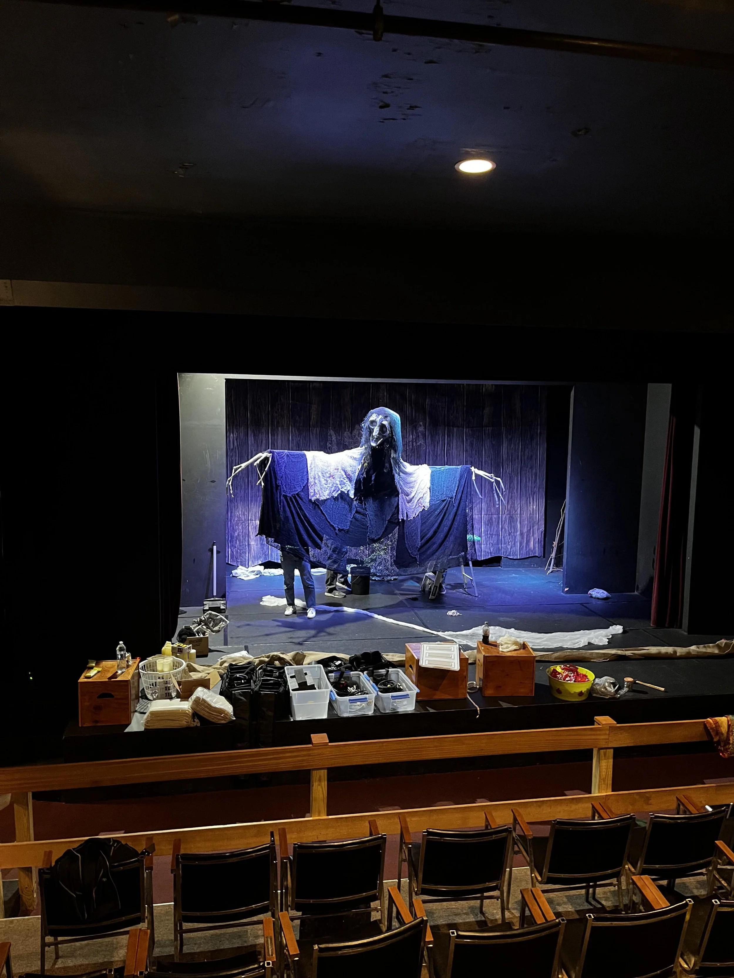 We are a small group of theater nerds who love to get our hands dirty and spend a weekend painting, assembling and testing special effects.